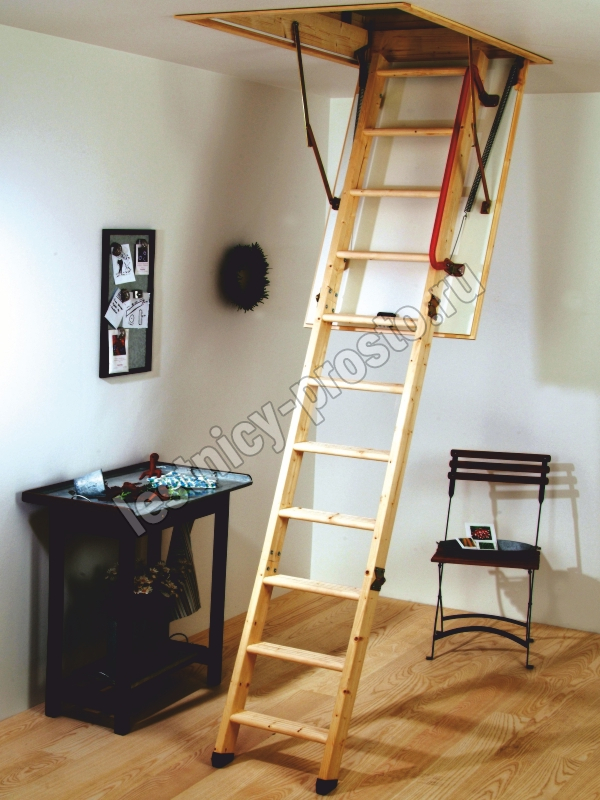 HOBBY 26 - трехсекционная утепленная лестница из скандинавской медленнорастущей ели, отличающейся повышенной прочностью.