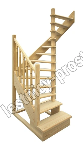 Деревянная межэтажная лестница ЛЕС-03 2525-2720 проем 1640-900, Лиственница