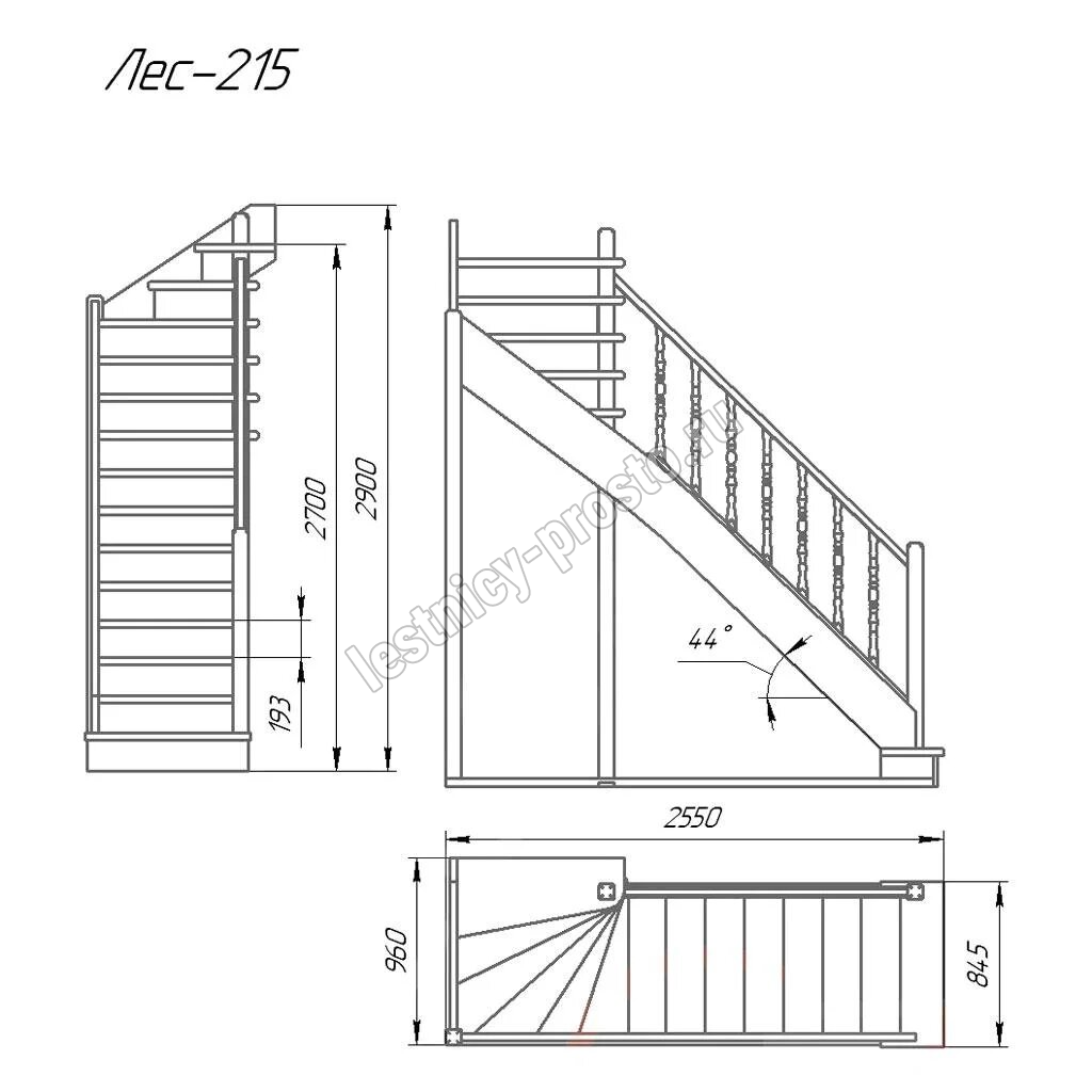 Деревянная межэтажная лестница ЛЕС-215, Сосна