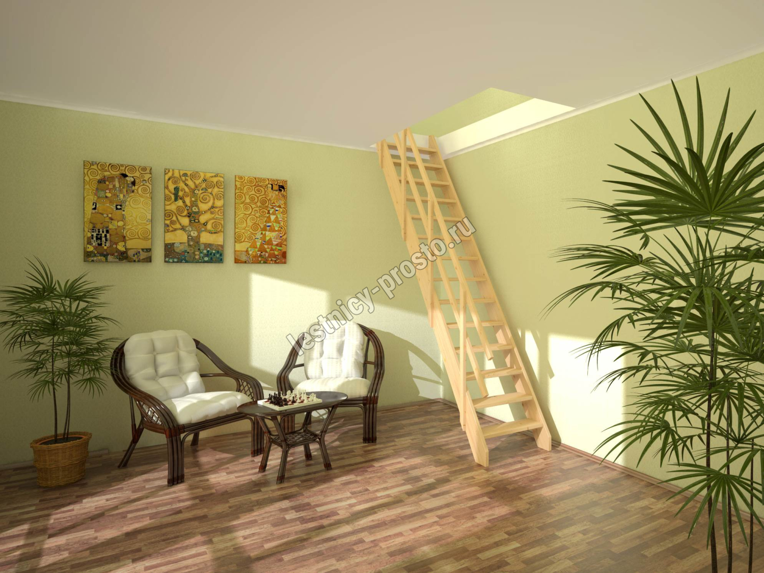 Базовый комплект включает в себя деревянные элементы лестницы без какого-либо покрытия. Вы можете заказать у нас покраску лестницы в цвета, отвечающие особенностям вашего помещения.