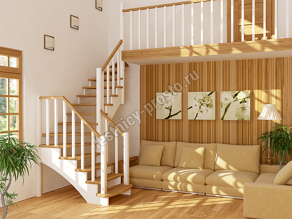 Классическая модель с забежными ступенями дает возможность произвести установку лестницы на ограниченном пространстве, несмотря на ее стандартный размер. Мобильность размещения и современный дизайн заслуженно можно считать преимущественными отличиями этой модели.