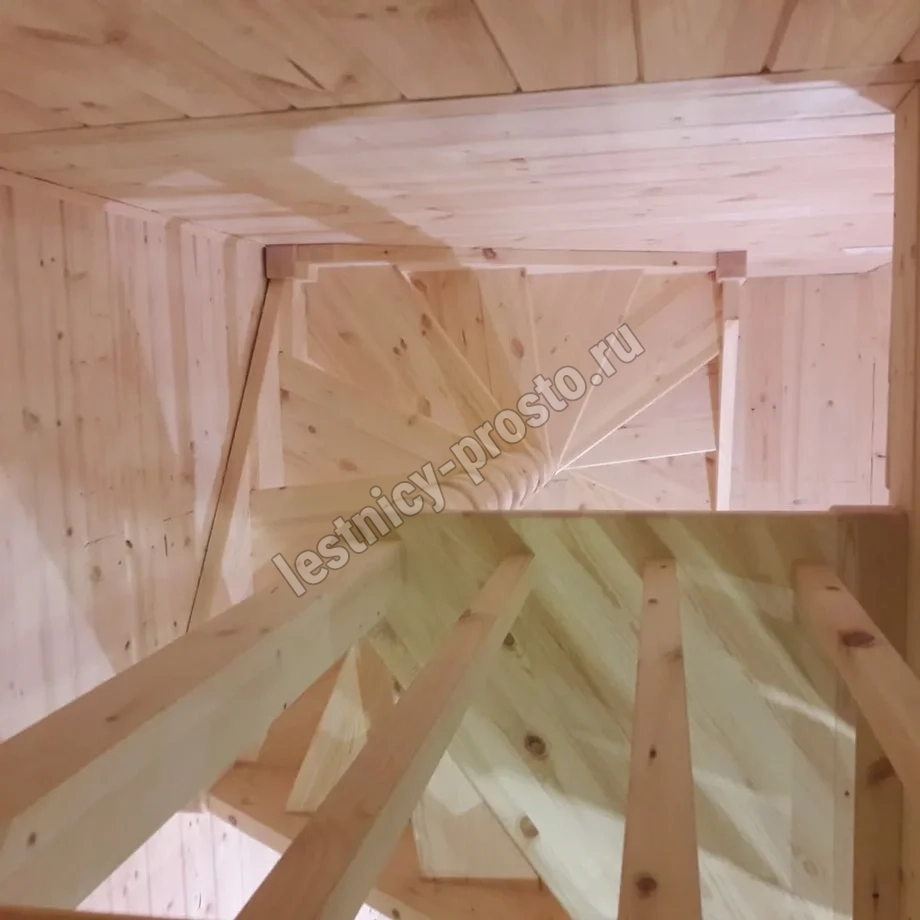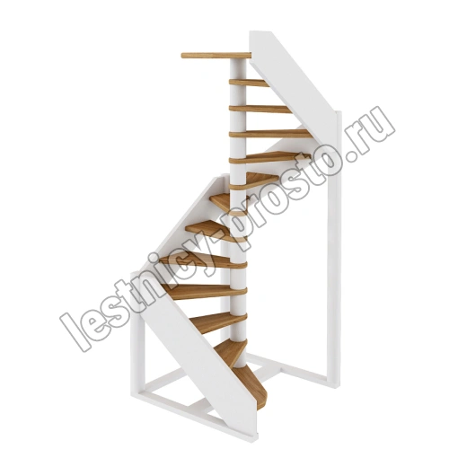 Небольшая аккуратная лестница, хорошо подойдет для помещения с небольшим проемом, поможет сэкономить пространство и организовать комфортный подъем на  уровень выше. Возможны варианты лестницы из сосны под покраску, сосны, дуба, бука или ясеня. Для увеличения срока эксплуатации мы рекомендуем покрыть элементы лестницы защитным средством. Вы можете сделать это самостоятельно или заказать предварительное покрытие необходимым средством (или тонирование) в нашем цеху.