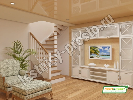 Ступени и поручень лестницы изготовлены из бука, остальные элементы из сосны.