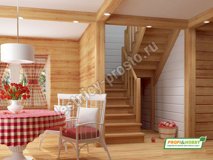 Ступени и поручень лестницы выполнены из дуба, остальные элементы из сосны. Возможно изготовление данной модели полностью из дуба.