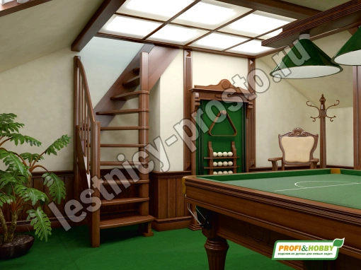 Ступени и поручень лестницы изготовлены из дуба, остальные элементы из сосны.