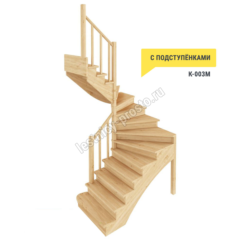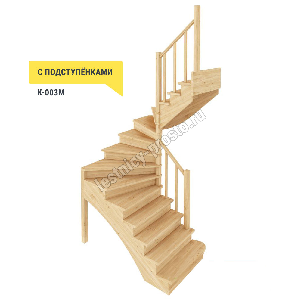 Базовый комплект включает в себя деревянные элементы лестницы с подступёнками и ограждения без какого-либо покрытия.