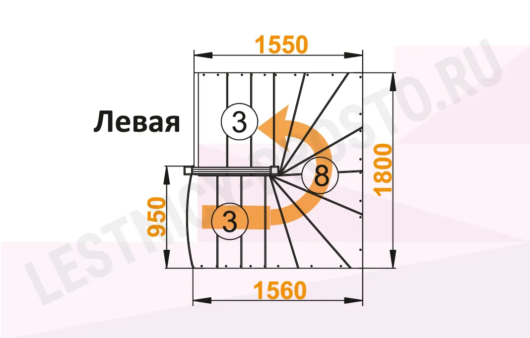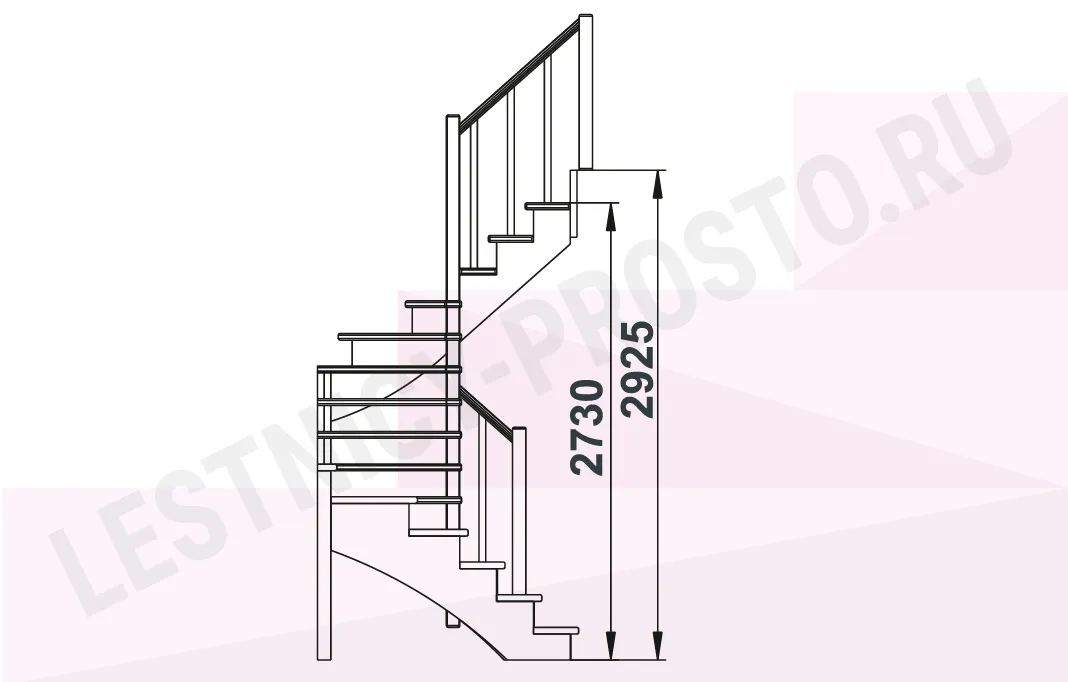 Схема лестницы К-003М/2 с поворотом налево