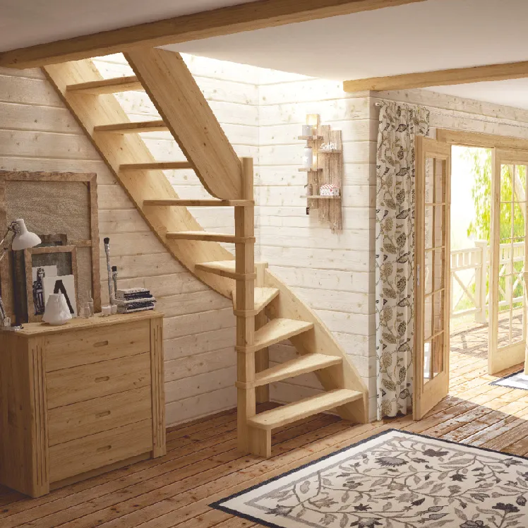 Базовый комплект включает в себя деревянные элементы лестницы и ограждения без какого-либо покрытия.