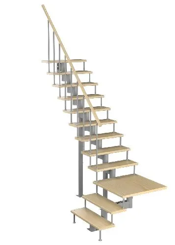 Усовершенствованная модель является малогабаритной и будет незаменима в небольших помещениях и дачных домиках. Компактная конструкция позволяет произвести монтаж в помещениях с небольшим проемом второго этажа. Удобная и надежная, эта лестница станет визитной карточкой вашего дома.