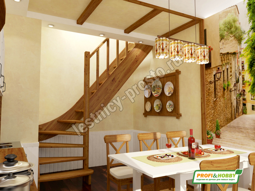 Ступени и поручень лестницы изготовлены из ясеня, остальные элементы из сосны.