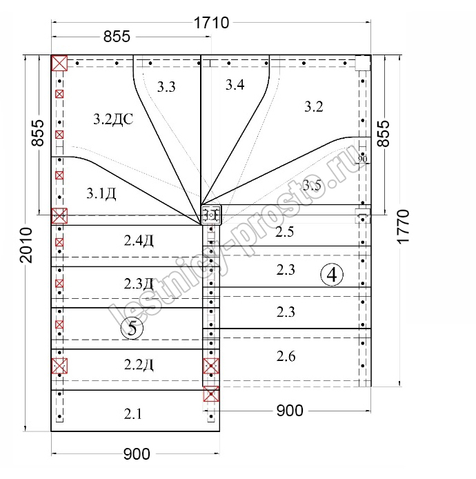 Высота лестницы 2923 мм