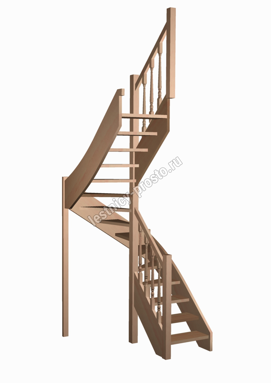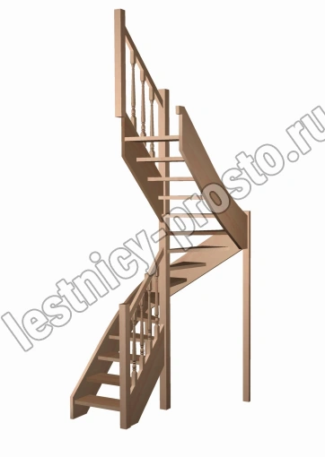 Базовый комплект включает в себя деревянные элементы лестницы и ограждения без какого-либо покрытия. В стандартной комплектации лестницы поставляются с квадратными столбами и точеными балясинами, при желании, можно заменить вид ограждений на любые другие из нашего каталога (оплачивается и оговаривается отдельно). Под заказ возможно изготовление данной лестницы с другими размерами, подходящими вашему помещению.