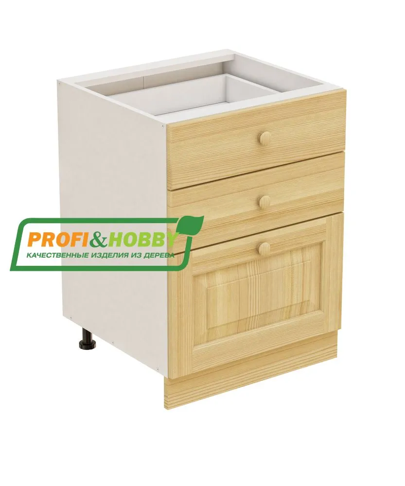 Тумба 3 ящика 600х530х720 + фасад сосна без покраски