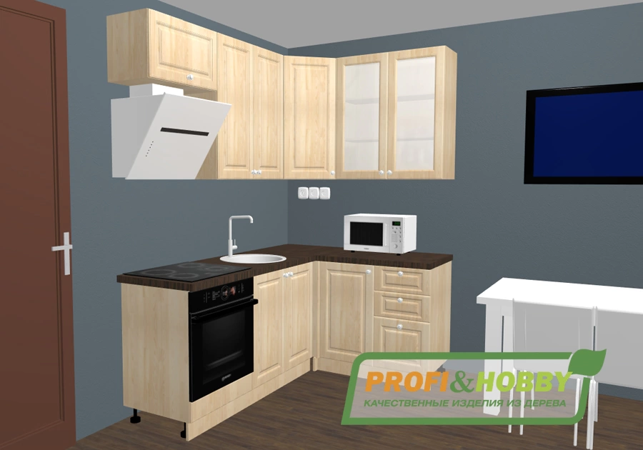 • Кухонные модули из сосны без тонировки (без отделки или прозрачный лак)