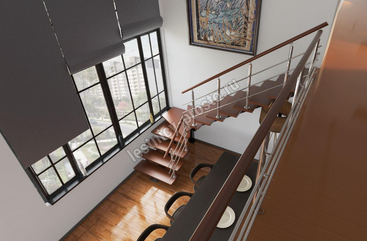 Лестница PROSTO MONO Г-образная h247.5 см, ступени бук