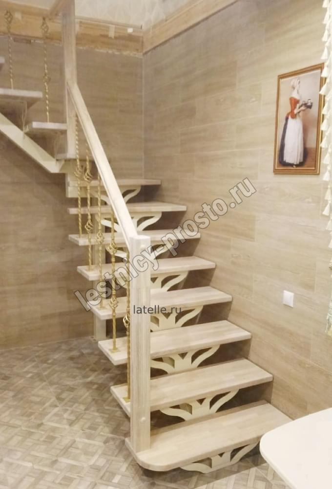 Лестница PROSTO MONO Г-образная h247.5 см, ступени лиственница