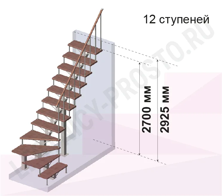Лестница PROSTO MONO Г-образная h292.5 см, ступени лиственница