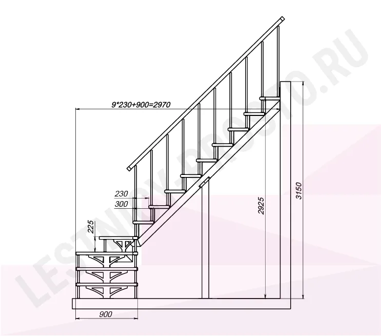 Высота лестницы 2925 - 3150 мм