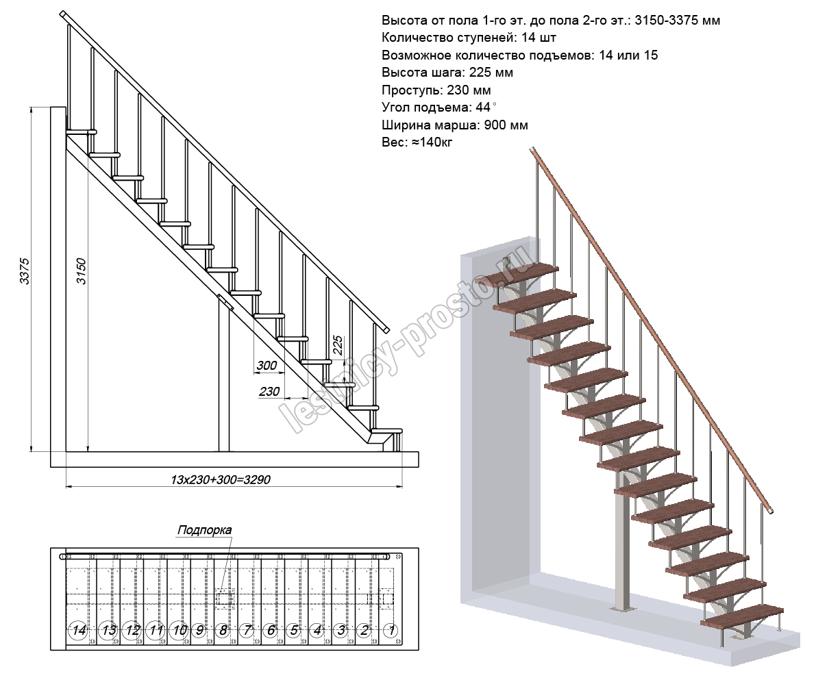 Высота лестницы 3150 - 3375 мм