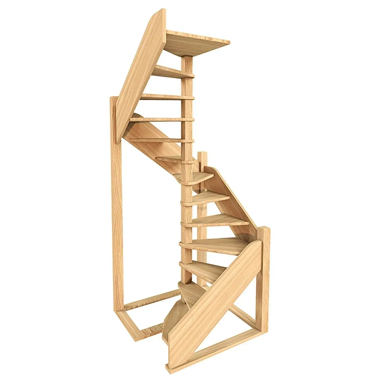 При монтаже этой лестницы, возможно регулировать высоту и глубину шага, таким образом можно получить лестницу под высоты этажа в диапазоне 2220 - 3000 мм. Ступени лестницы выполнены из сращенной ольхи и покрыты бесцветным защитным лаком.