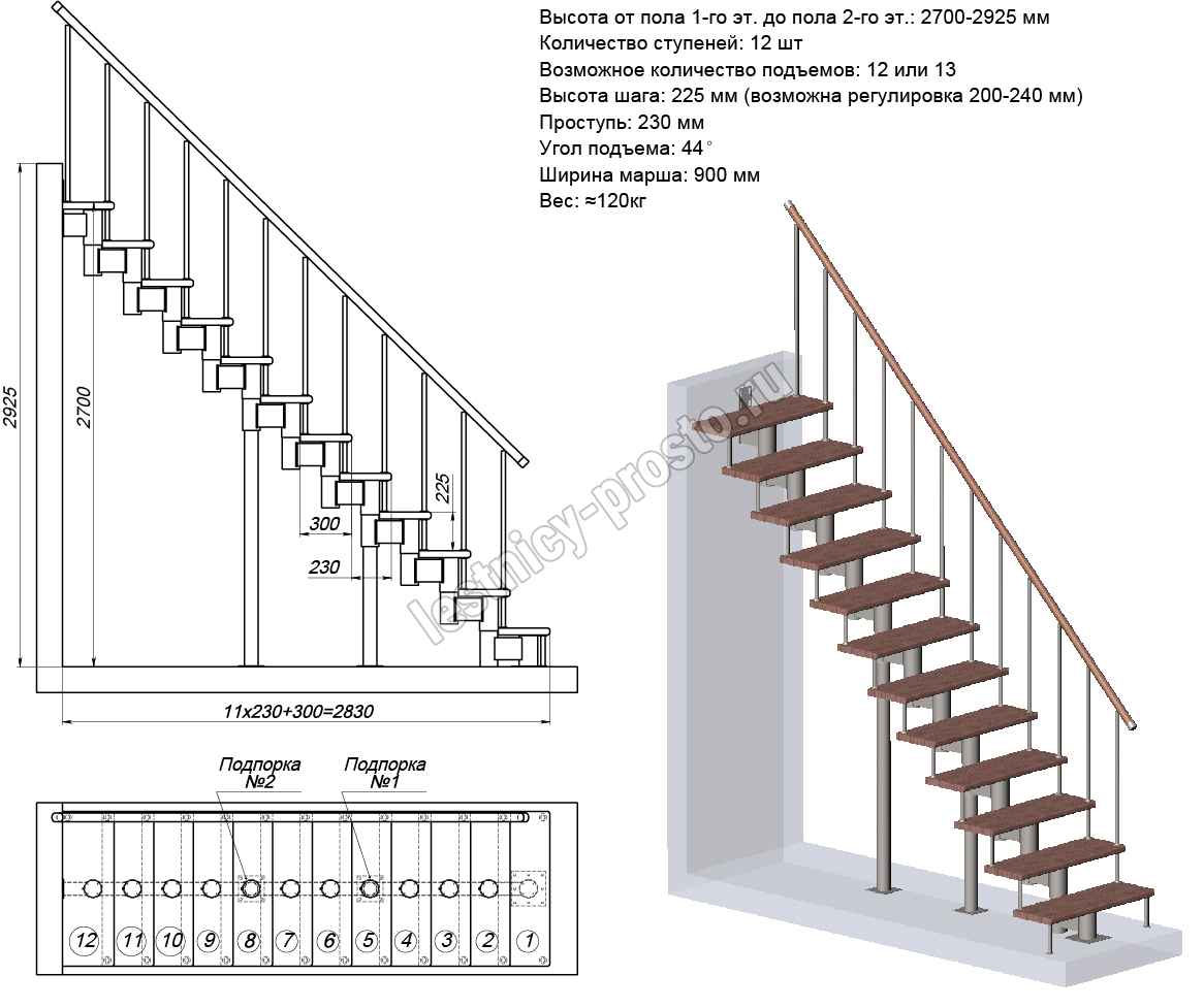 Модульная лестница PROSTO Module прямая/ h292.5 см
