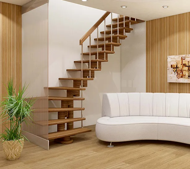 Каркас лестницы представляет собой набор модулей, которые комплектуются уже готовыми к монтажу.