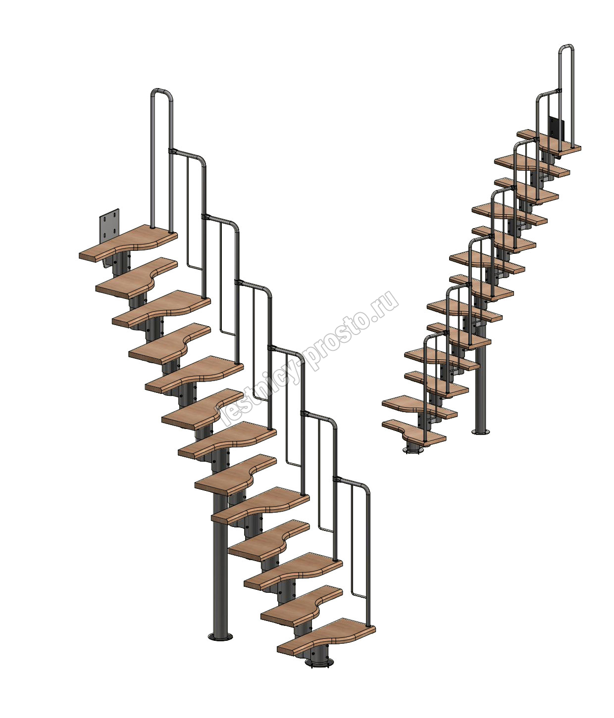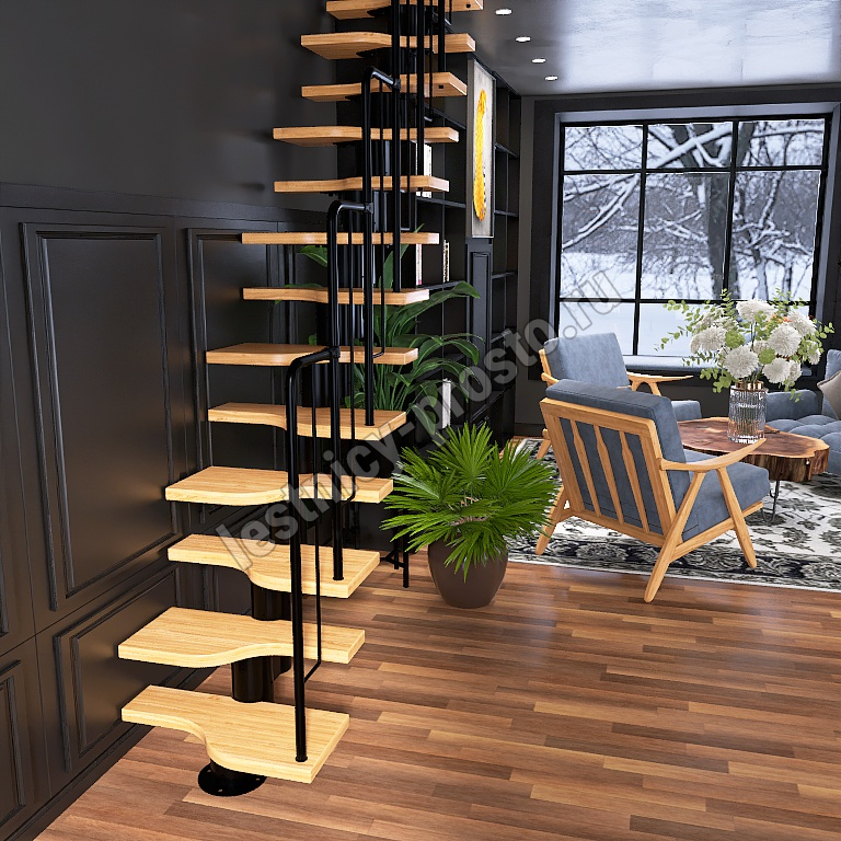 Лестница Prosto Urban Black гусиный шаг 700 мм, h234-336 см (13 ступеней), ясень