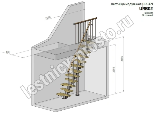 Лестница Prosto Urban Black гусиный шаг 700 мм с поручнем ПВХ/Ступени из берёзы мультиплекс