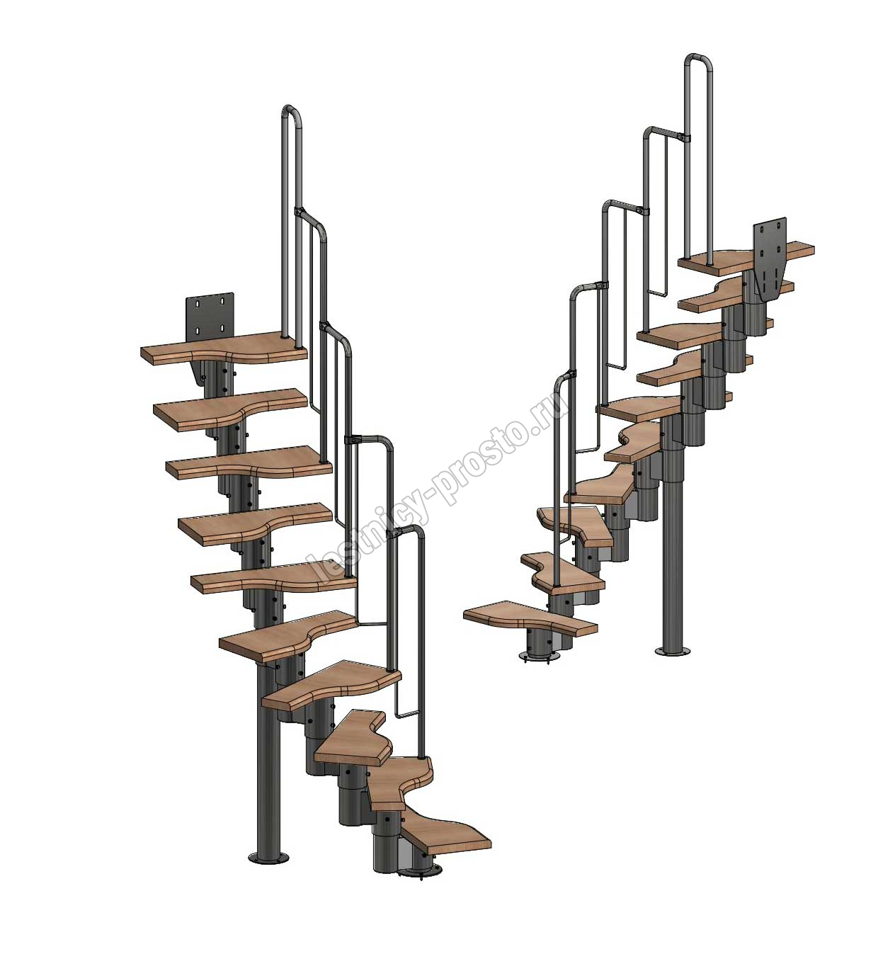 Лестница Prosto Urban Black гусиный шаг 600 мм, h180-264 см (10 ступеней), бук