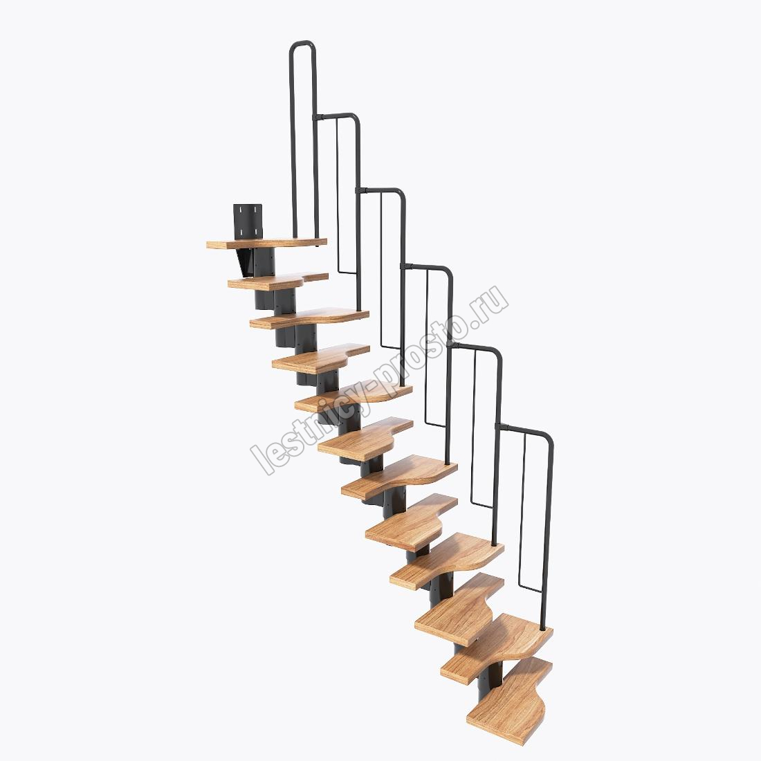 Лестница Prosto Urban Black гусиный шаг 600 мм, h198-288 см (11 ступеней), дуб