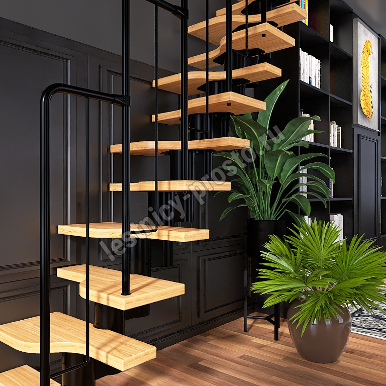 Лестница Prosto Urban Black гусиный шаг 600 мм/Ступени из срощенного дуба