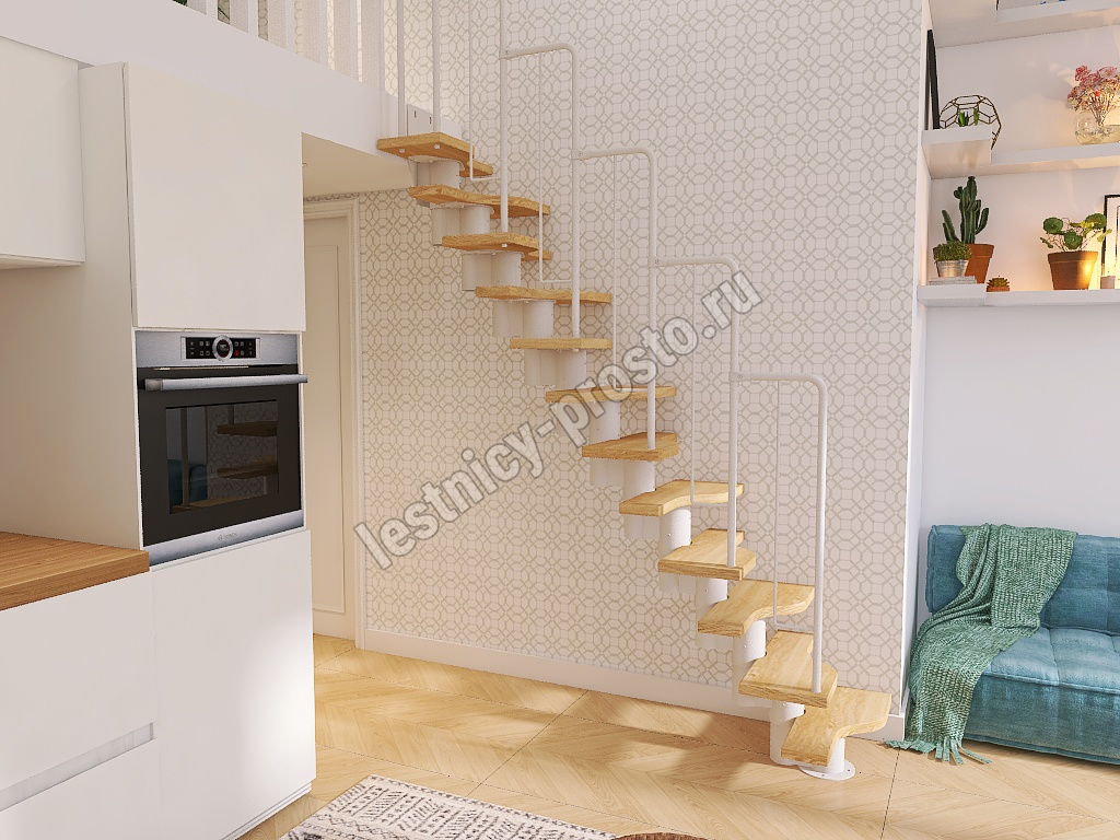 Лестница Prosto Urban White гусиный шаг 700 мм, h234-336 см (13 ступеней), бук