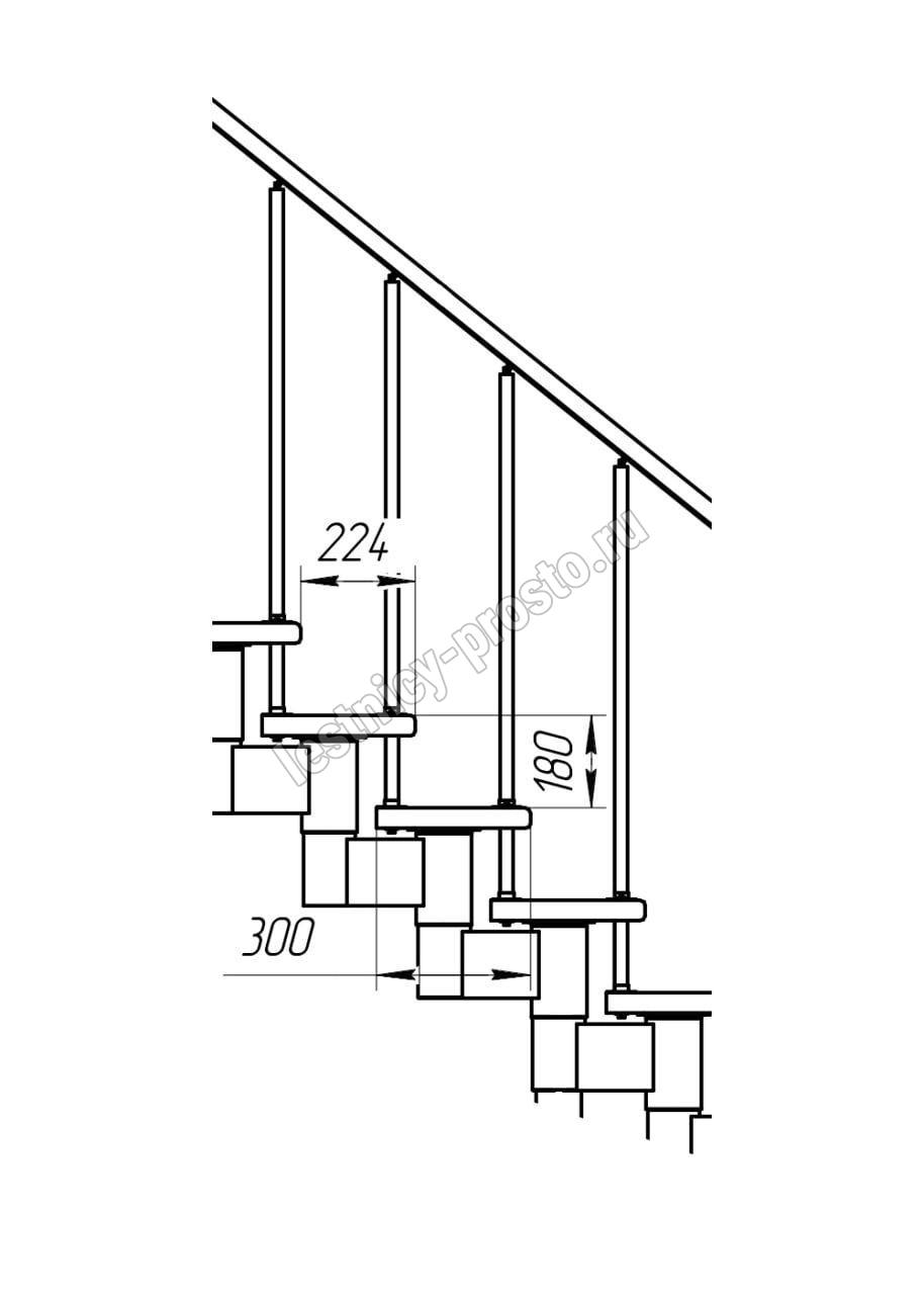 Модульная лестница Фаворит 180 2340-2470, Белый, Бук, Нержавеющая сталь