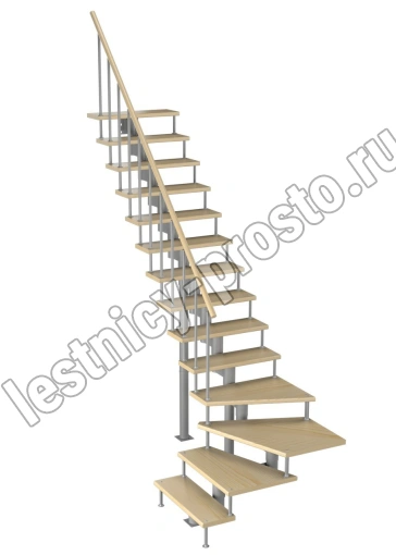 Модульная лестница Фаворит 180 2520-2660, Серый, Сосна, Нержавеющая сталь