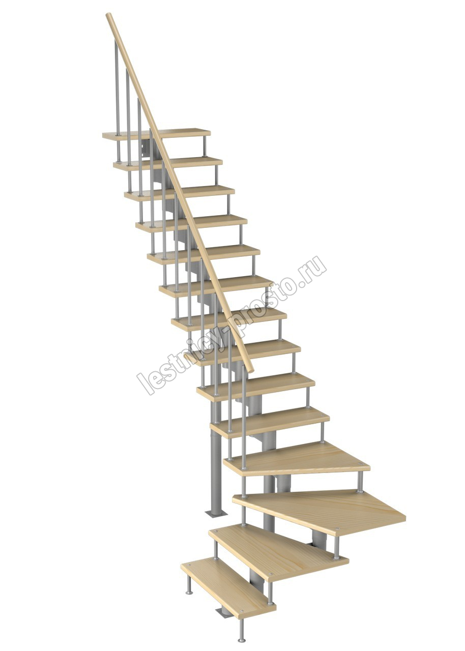 Модульная лестница Фаворит 225 3150-3290, Серый, Сосна, Крашеная