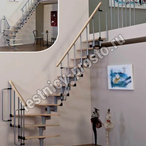 Joker 600: ширина ступени - 600 мм, ступени из берёзы, максимальная высота 2800 мм, поручень в цвет металлокаркаса