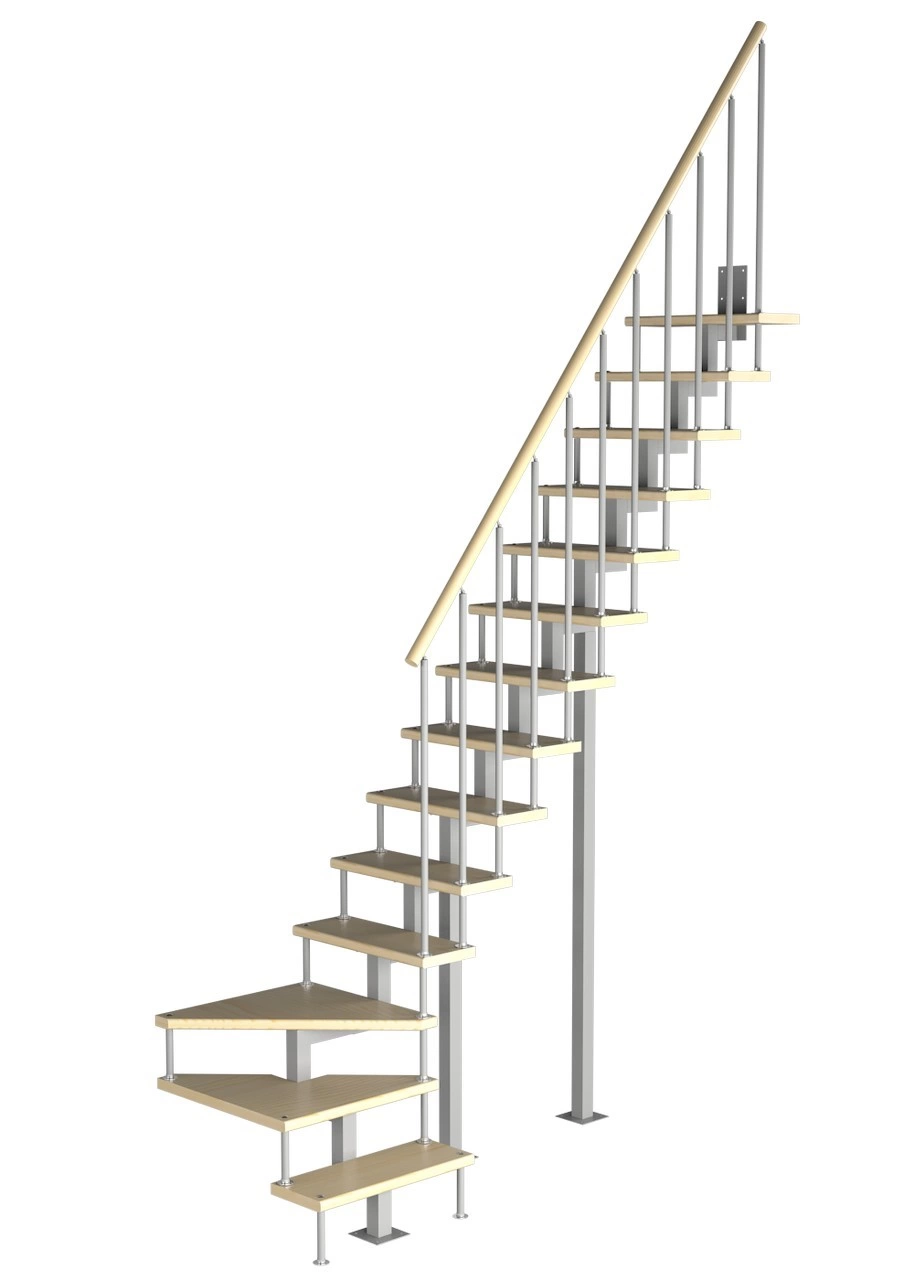 Модульная лестница Стандарт 2250-2350, Серый, Сосна, Нержавеющая сталь