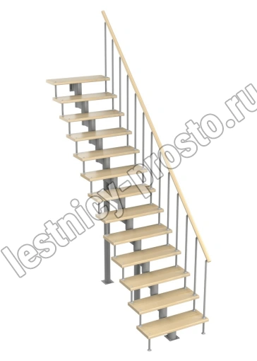 Модульная лестница Стандарт 3150-3290, Серый, Лиственница, Нержавеющая сталь