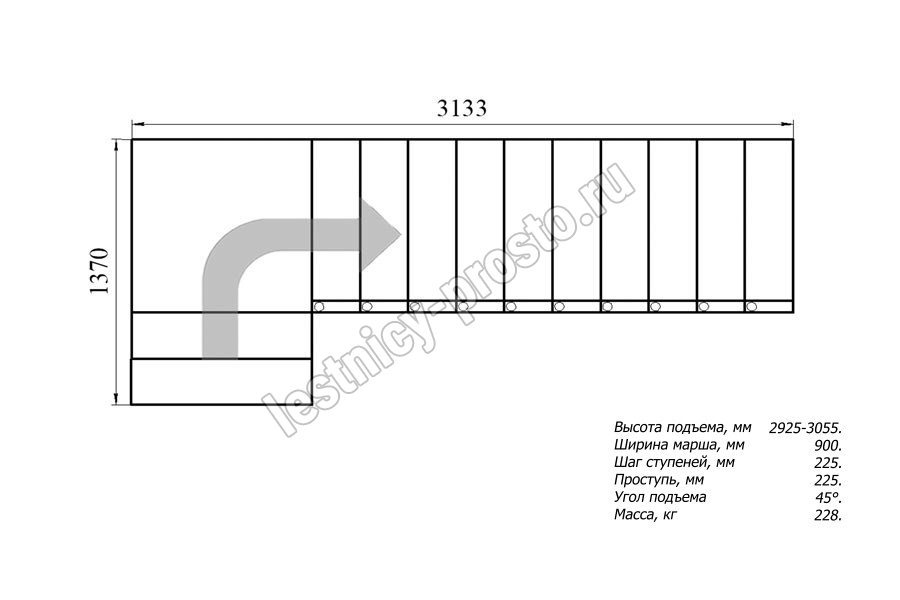 Модульная лестница Статус 225 2925-3055, Серый, Бук, Нержавеющая сталь