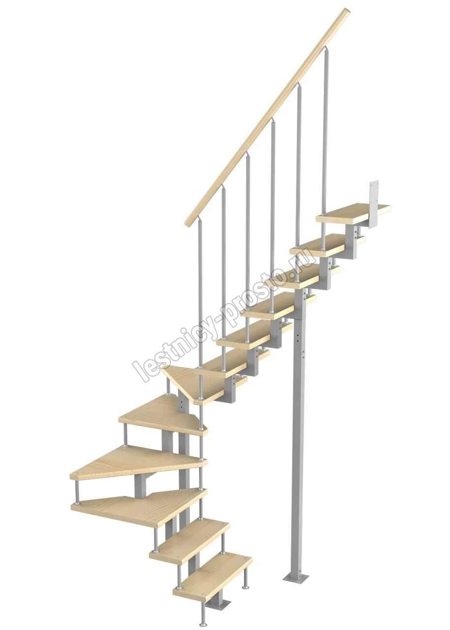 Модульная малогабаритная лестница Эксклюзив 2700-2925, Серый, Лиственница, Нержавеющая сталь