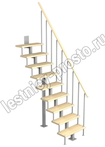 Модульная малогабаритная лестница Линия 2025-2250, Серый, Сосна, Нержавеющая сталь