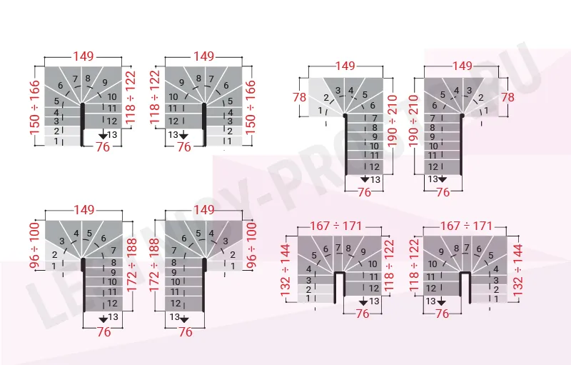 Ширина ступени регулируется при монтаже в пределах 180 - 220 мм
