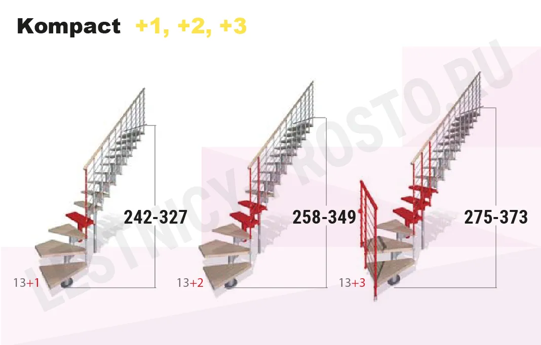 При монтаже этой лестницы, возможно регулировать высоту и глубину шага, таким образом можно получить лестницу под высоты этажа в диапазоне 2250 - 3030 мм, кроме того, установив дополнительный комплект увеличения высоты, можно поднять высоту лестницы до 3730 мм.