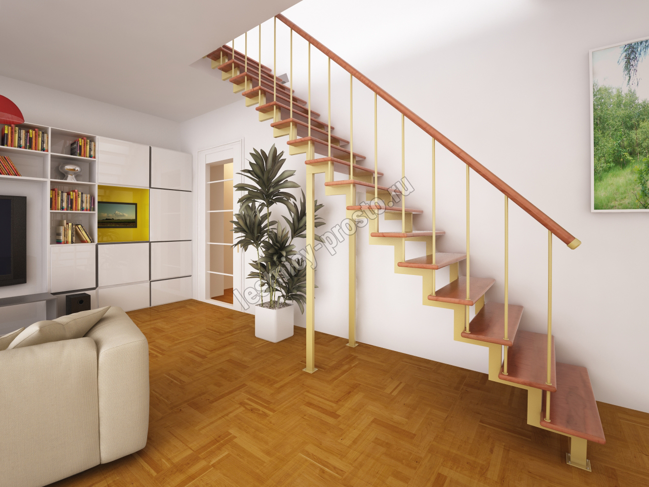 Лестница Prosto Due 40×80 прямая, ступени хвоя