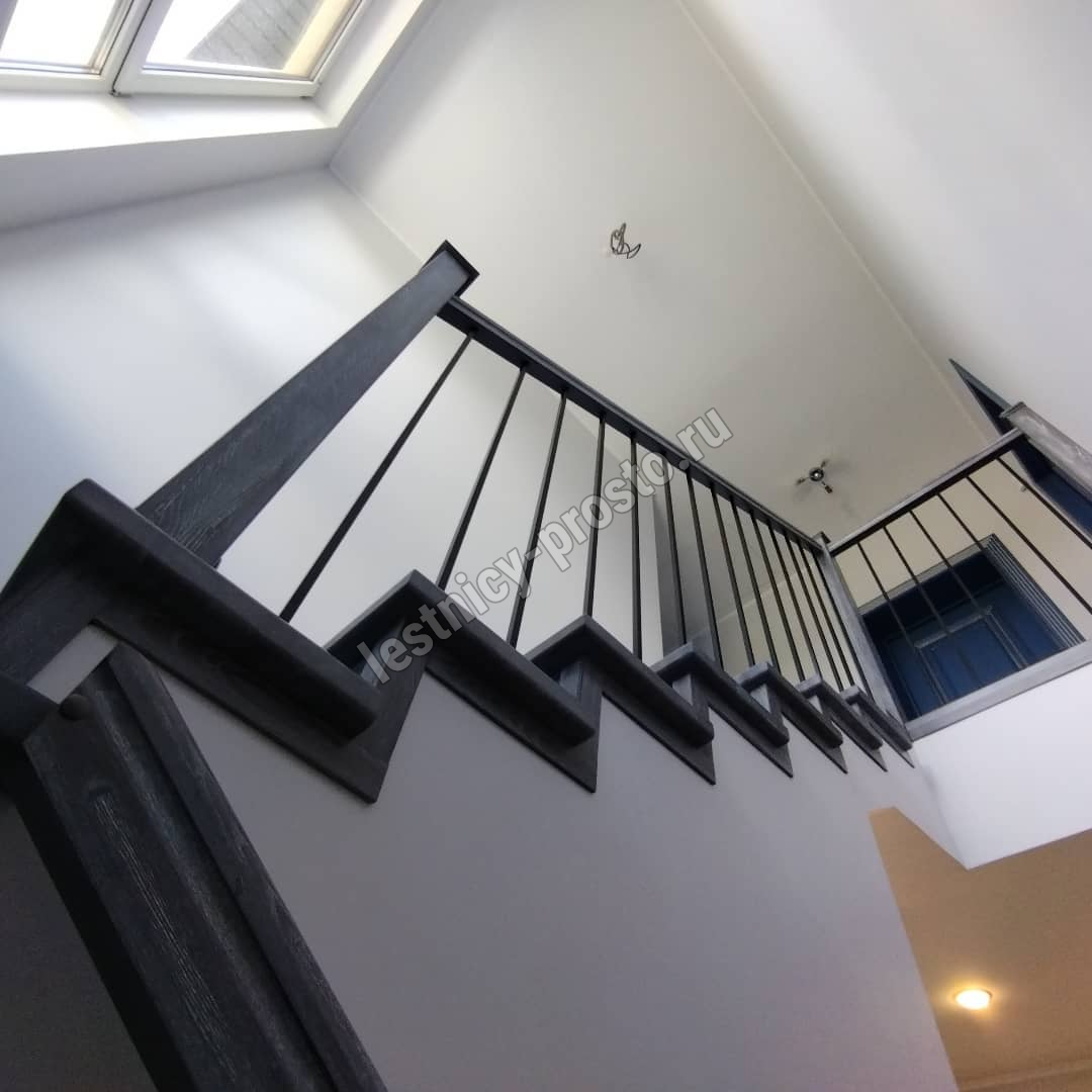 Подступенники, фальш-косоуры и сапожки (пристенной плинтус) выполнены из дуба.