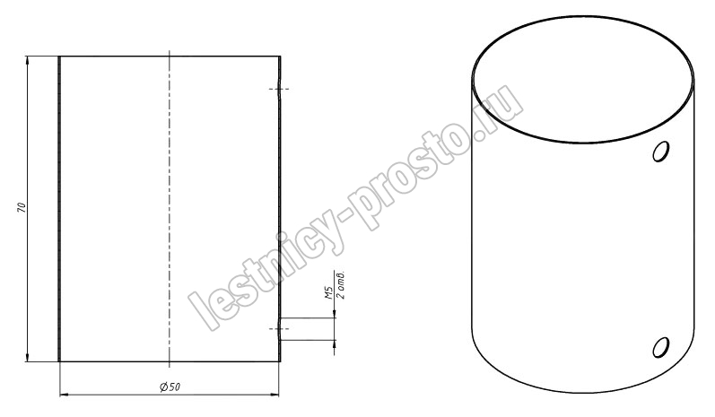 Применяется для наружного соединения круглого деревянного или пластикового поручней без использования сварки.