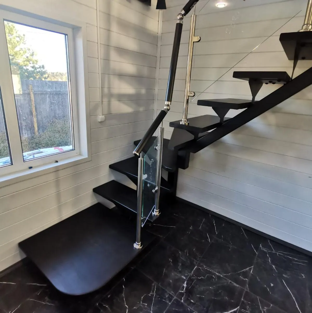 Ступени и поручень выполнены из срощенного бука.