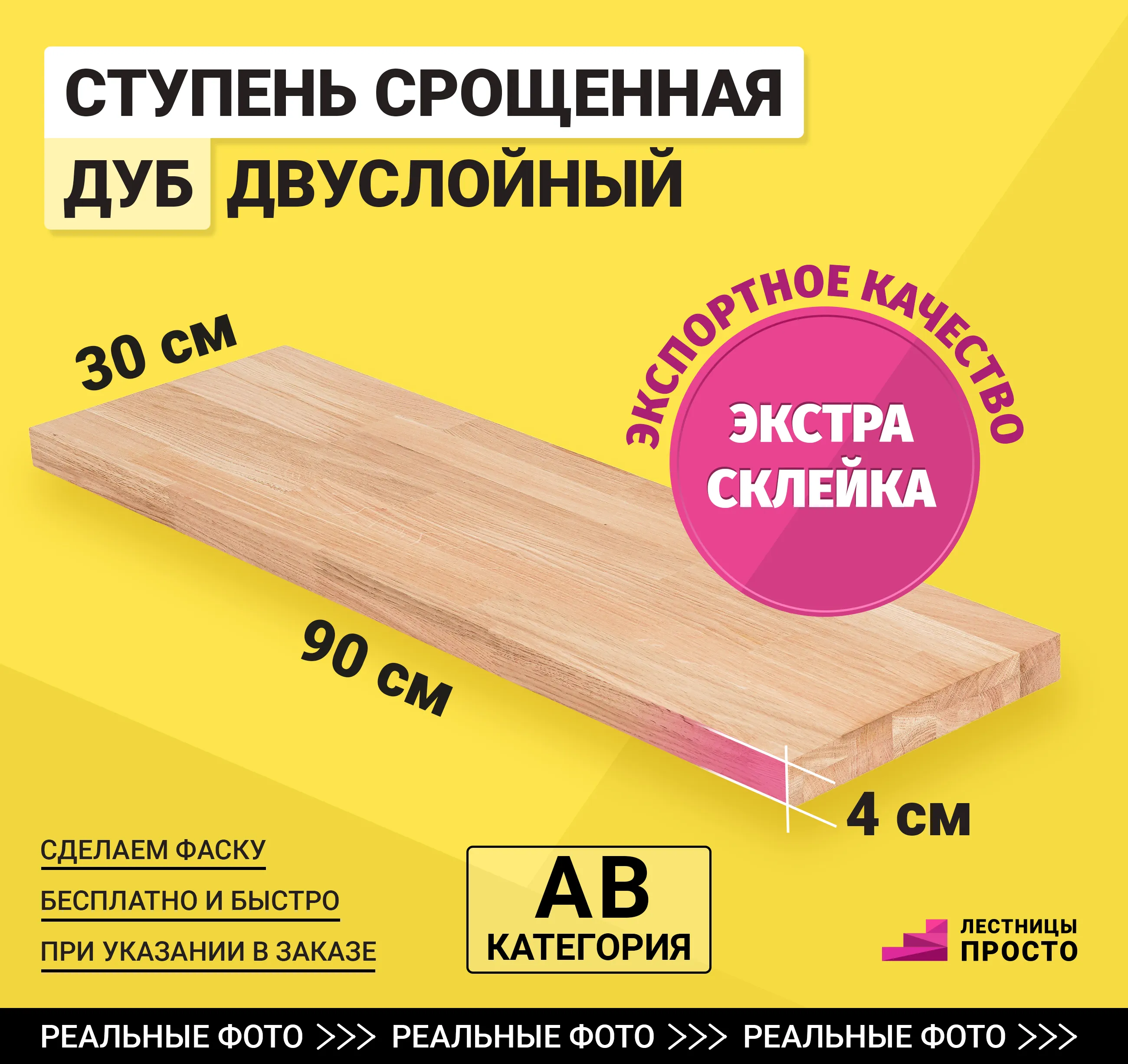 Данная ступень изготовлена из срощенного дуба категории А/В.