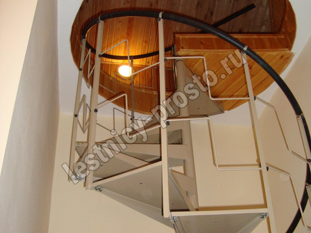 Компактная металлическая винтовая лестница КАСКАД. Ступени лестницы покрыты специальным антискользящим материалом.
