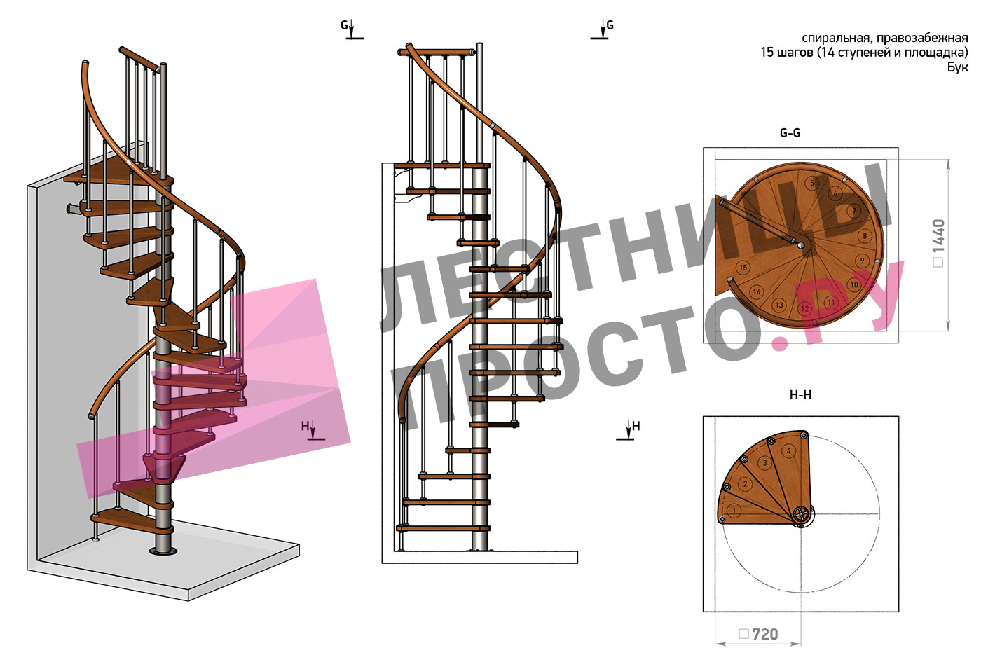 Винтовая лестница Prosto Spiral White D140см, h325.7-369.8 см, бук